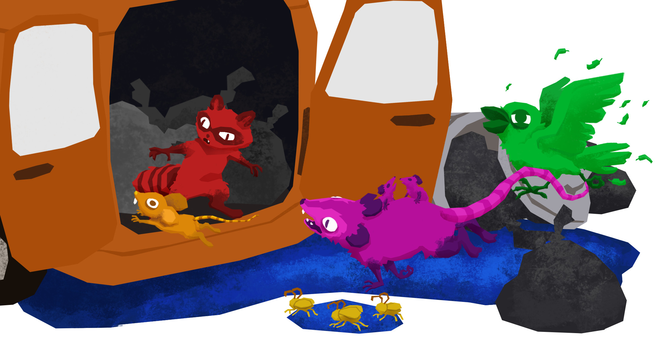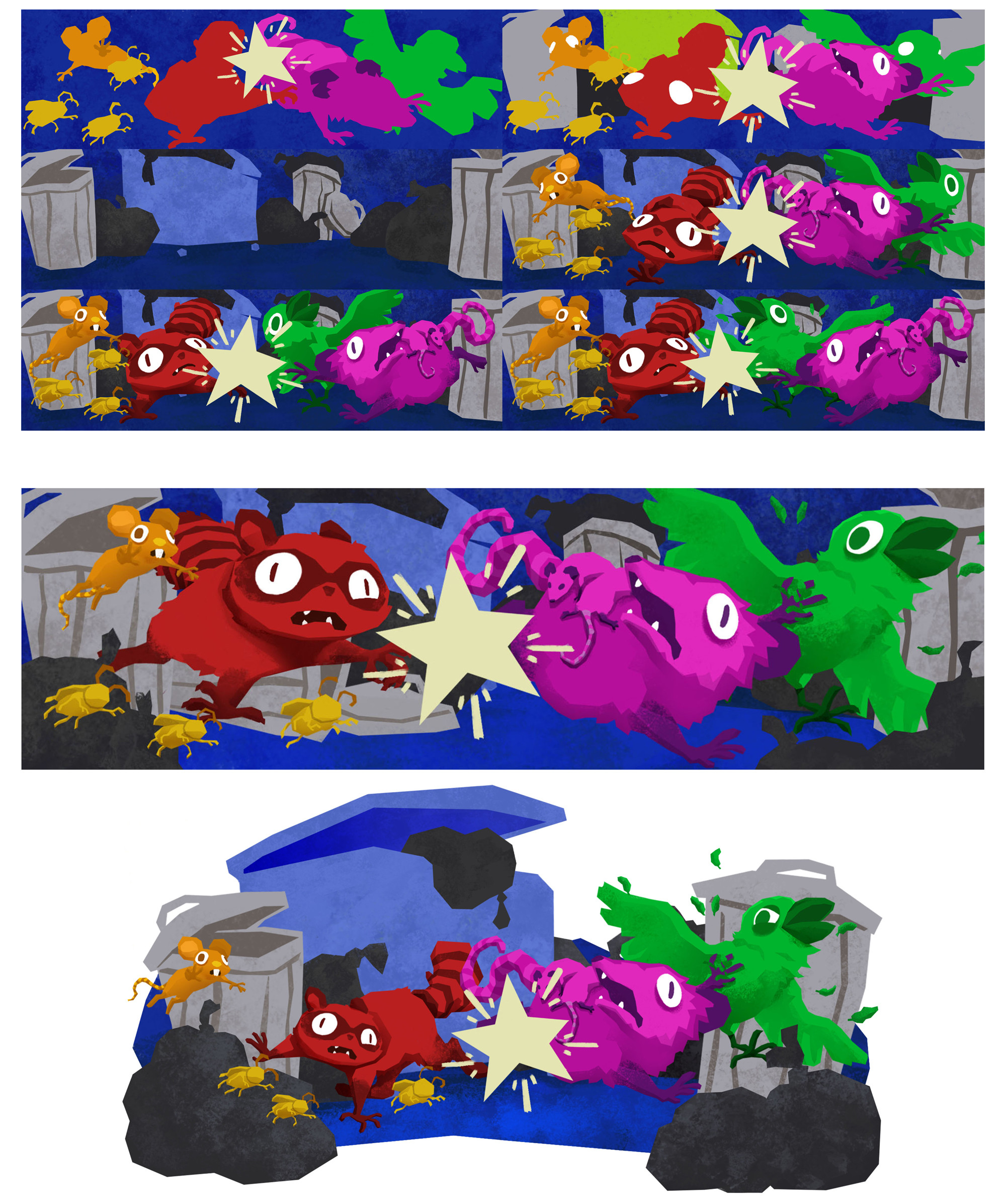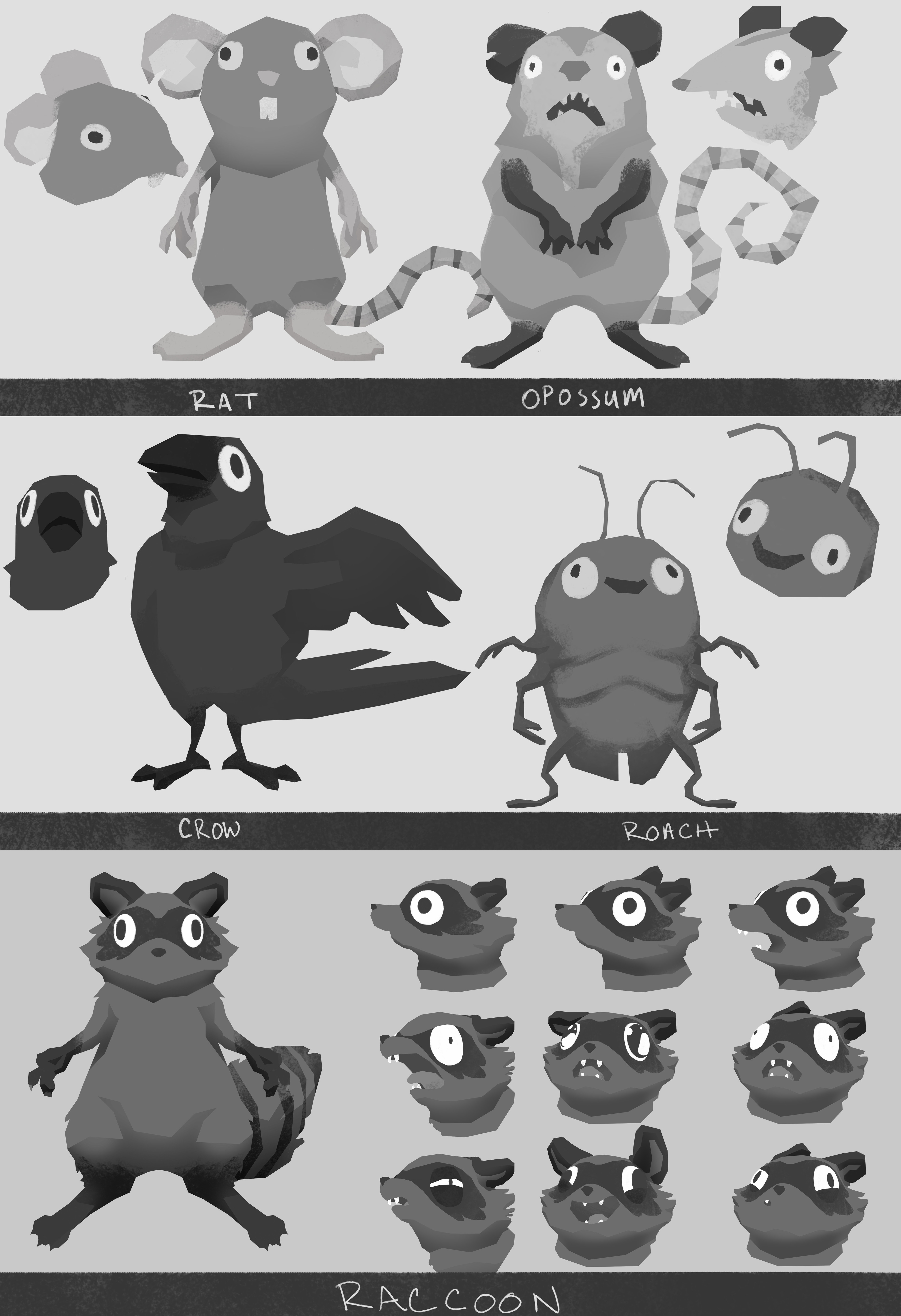 Color testing the overall mood and vibe of Trash Heist in game coloring.